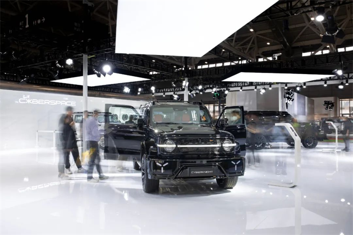 最终在2021年,刘书麟果断放弃原有业务,正式成立个性化汽车品牌——超境汽车。短短2年间,超境汽车已推出赛博坦克300、赛博骑士等个性化量产车型,一次又一次颠覆消费者想象。2021年推出的赛博坦克300,打造了一款纯银白内外饰的科技感越野车;2022年推出的赛博骑士,则打造了一款大量采用碳纤维等高端材质的精致“方盒子”;2023年最新亮相的CYBERP!CKUP,更是国内从未有过的“六轮新物种”。